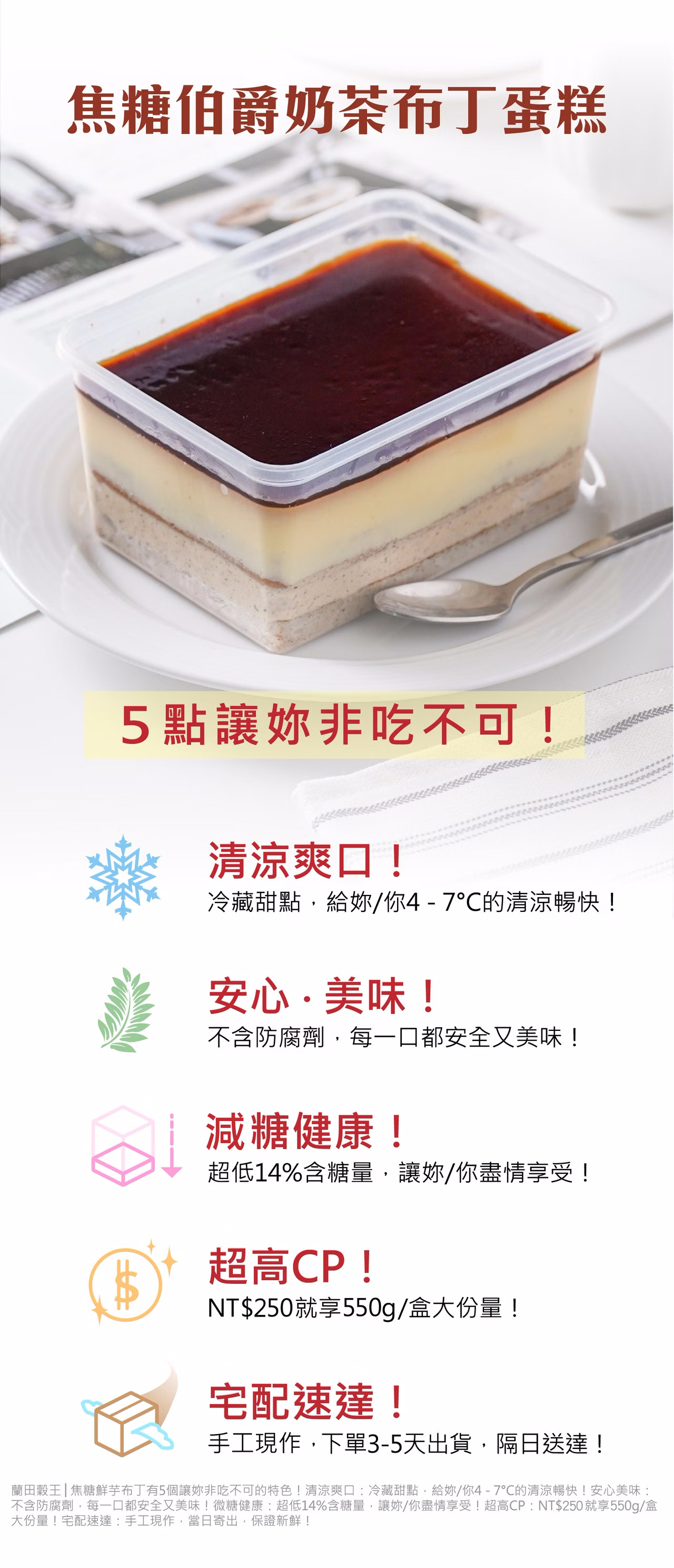 內 容 物:伯爵奶茶布丁蛋糕,1盒。